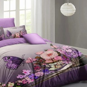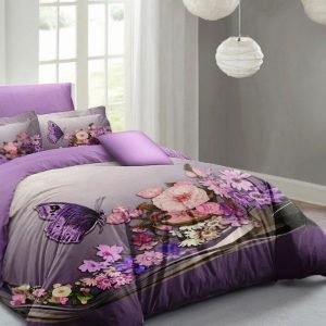 “Dreamy Atmosphere, Royal Elegance – 4-Piece Luxury Bedding Set with Purple Butterflies and Floral Design